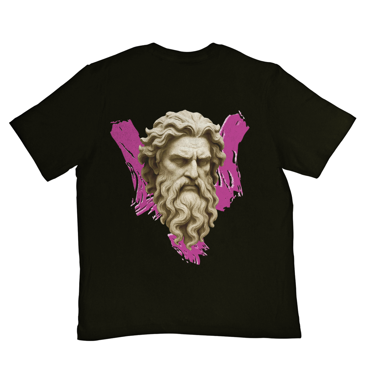 En este diseño tenemos en la parte trasera una escultura del rostro del dios griego